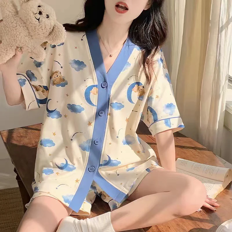 Pajamas For Women Summer Cute Cardigans Home Clothes New Women S Two Piece Set