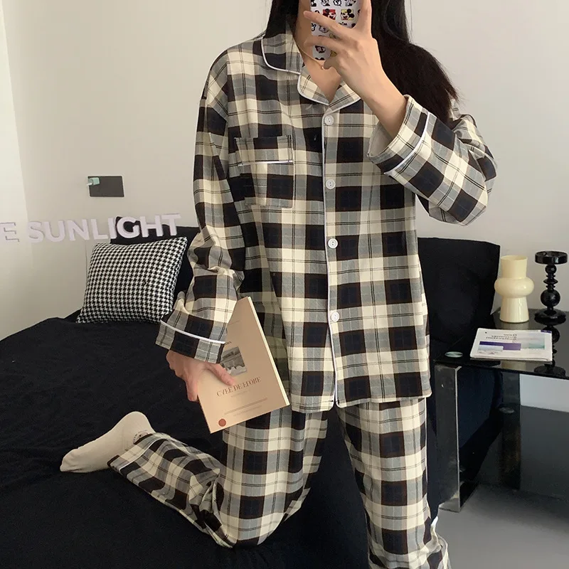 Pyjama respirant à manches longues pour femmes, vêtements de nuit pour étudiants, cardigan à rayures grises, vêtements d'intérie